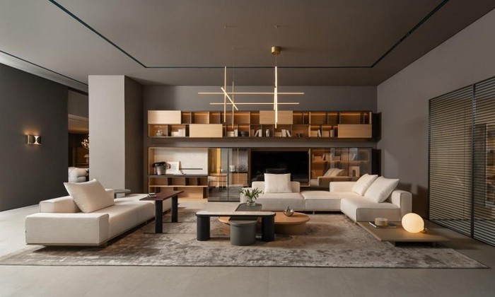 展厅由七个完整生活场景与一个 HC28 Café 体验区构成,从家的功能出发,延展出不同人群与生活方式的多维表达。在这里,有孩家庭的现代生活以柔和木色和温润材质描绘出秩序与温度;艺术居所以光影与比例构筑生活的舞台感;思考者的书房回归理性与静谧;都会夫妻的居所在共享与独立之间平衡优雅;度假之家将左岸护墙系统与平行空间系统融为柔和立面,让家有松弛的节奏;海景大宅以开阔尺度与沉稳材质呈现格局与气度;而展厅中央的 HC28 Café,则让人放慢脚步,在一杯咖啡的时间里体会设计的温度与生活的柔软。