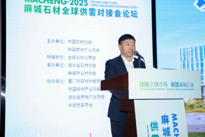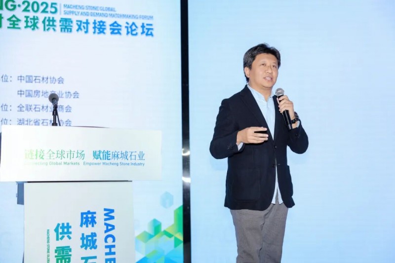 ▷全联石材业商会会长刘良作《共建石材产业新生态 助力麻城石材走向世界》主题演讲 刘良认为,当前石材行业面临订单减少、竞争加剧的挑战,麻城应聚焦品牌建设,抢占机场、车站等公共工程细分市场;巩固欧美日韩等传统市场,拓展东南亚、中东、中亚等新兴区域;推动从产品、技术到加工能力的全面输出,构建内外协同的产业新生态。