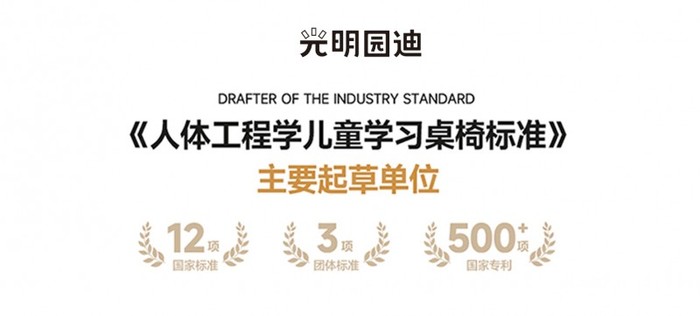 一、从“行业追随”到“标准制定”:一个品牌的使命升维 在儿童学习桌椅行业快速发展的浪潮中,光明园迪很早就意识到:真正的行业引领,不在于功能的多寡,而在于标准的建立。 2018年,光明园迪作为主要起草单位参与制定《人体工程学儿童学习桌椅标准》,将“小C口”设计理念、桌椅联动调节机制、科学视距管控等创新成果写入行业标准。这不仅是对产品设计的肯定,更是对“科学正姿”理念的行业级推广。 “光明园迪希望通过标准的建立,让整个行业有章可循,让家长选择有据可依。”截至目前,光明园迪已参与制定12项国家标准、3项团体标准,从产品安全到人体工学设计,全方位护航儿童健康成长。