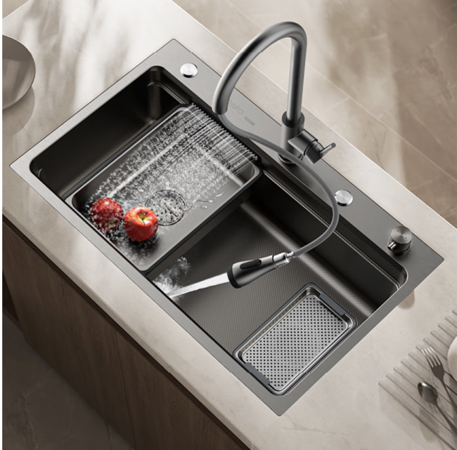 这款吸顶灯不仅价格亲民,更在品质上毫不妥协:具备Ra≥90的高显色指数、RG0豁免级蓝光危害认证,以及无可视频闪等专业护眼特性,兼顾视觉健康与使用舒适度。此外,京东联合佛山照明同步推出“免费安装”服务,彻底消除用户的安装顾虑。产品一经上线便迅速走红,成为当年618大促期间的人气爆款,成交额同比增长超10倍,月均销量稳定突破5000台。 “依托佛山照明深厚的制造实力与技术积淀,结合京东领先的数字化与智能供应链能力,我们共同打造了真正契合用户需求、贴近消费者期待的优质产品,佛山照明今年2月在京东的销量实现38%的同比增长。”佛山照明电商事业部总经理廖建祖表示。 京东采销负责人也指出,“大单采买专供品”模式的核心,是聚焦特定价格带,打造极致质价比。在与佛山照明的成功合作基础上,该模式已拓展至浴霸、智能马桶、陶瓷洁具等多个家居细分品类,旨在让更多家庭以更实惠的价格,享受到更高品质的产品与服务。 打造京东大单采买专供品,日丰卫浴供应链协同实现双向赋能 在日丰卫浴工厂,“日丰瀑布水槽”正源源不断下线。这款由京东与日丰联合打造的爆款单品,已成为国货水槽的标杆之作。产品采用双导轨设计,实现洗、切、沥一体化操作;表面应用纳米涂层技术,有效抵御剐蹭划痕,兼顾实用与美观。
